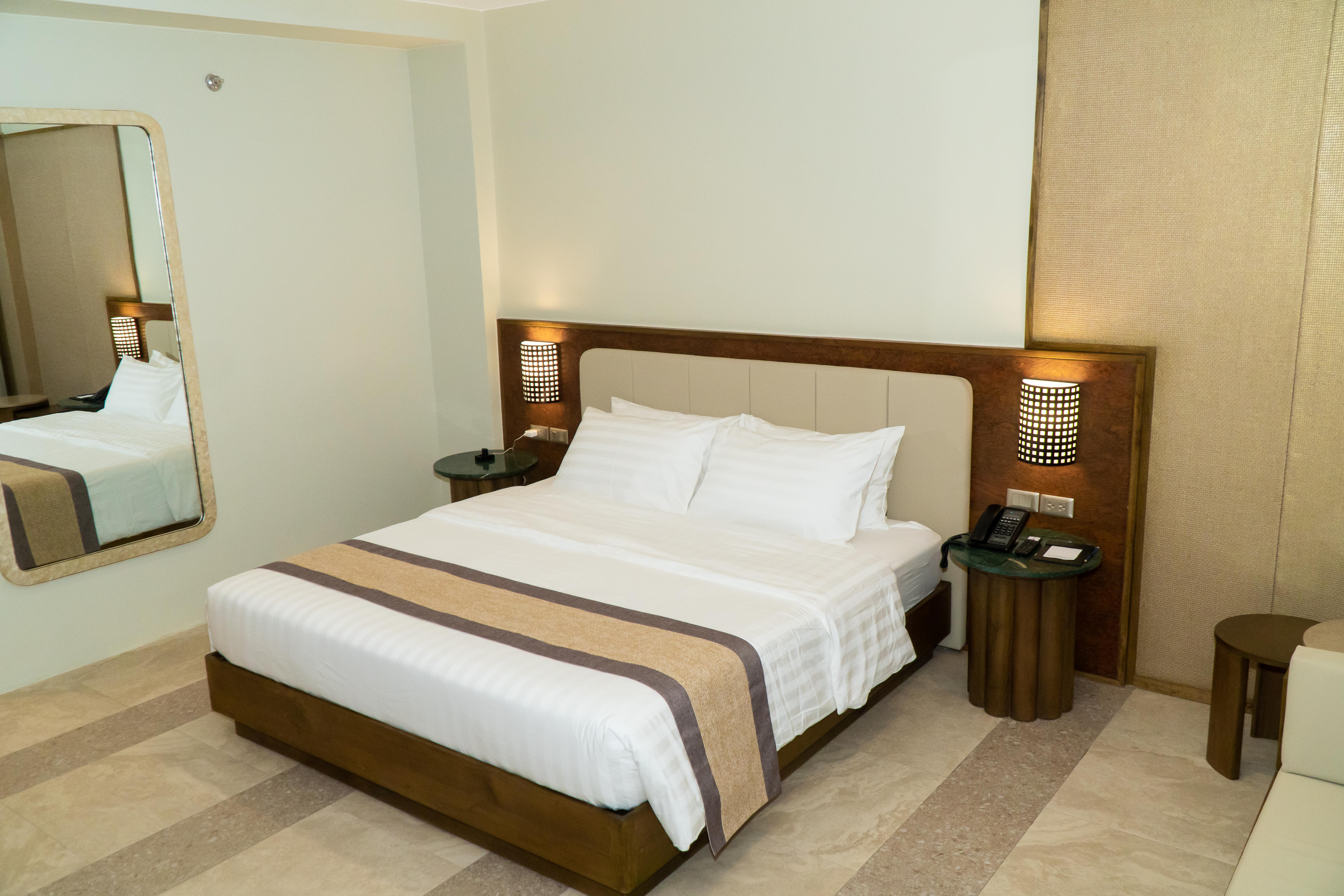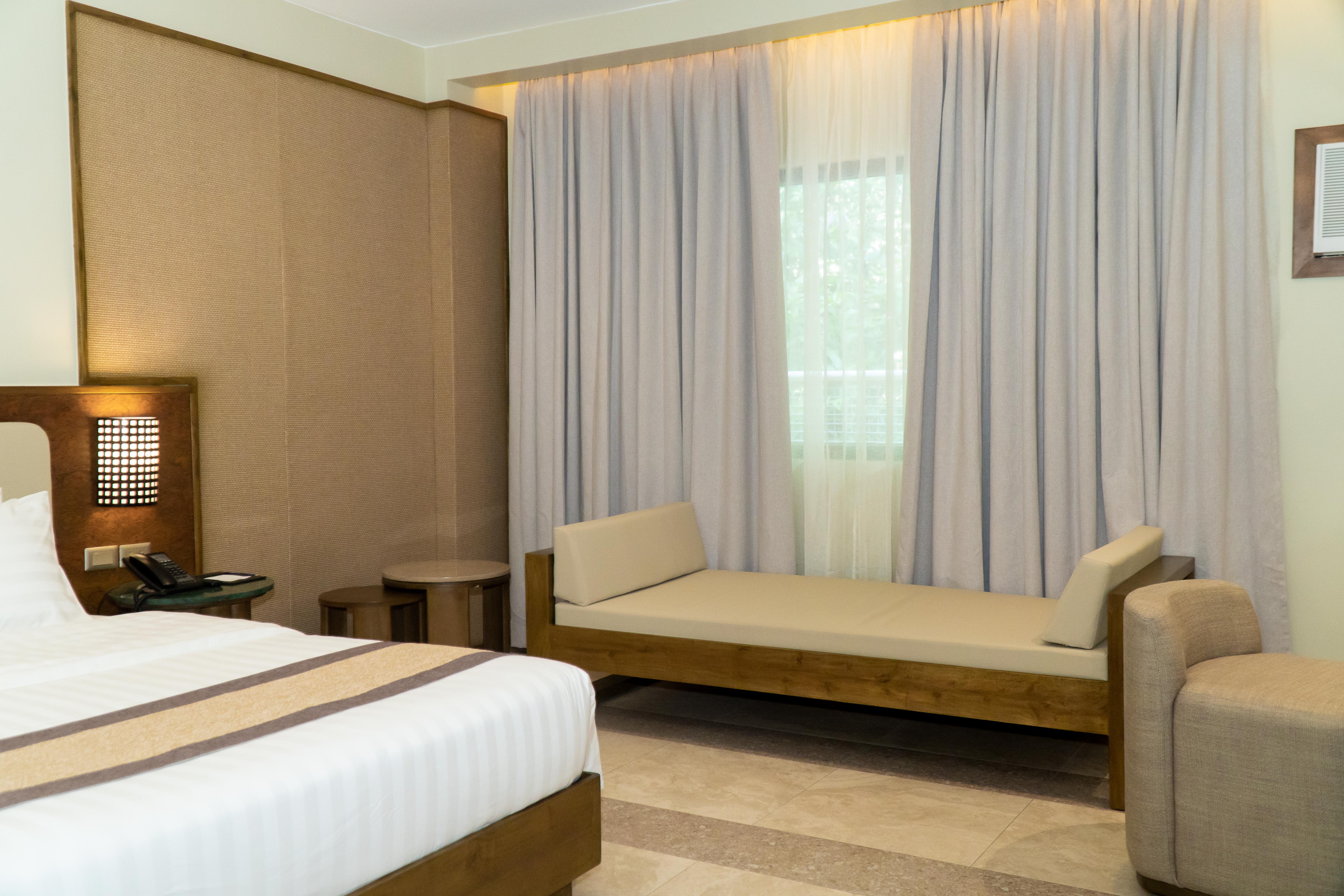 Experience elevated comfort in our Grand Deluxe King, perfect for two guests. Spanning 35 sqm, this elegantly designed room features a super king-size bed, offering exceptional space and comfort. Relax on the stylish day bed, ideal for lounging or unwinding with a view. For added convenience, this room can be connected to a Grand Deluxe Twin, making it an excellent option for families or groups seeking more space. Thoughtfully appointed with modern amenities and luxurious finishes, this room ensures a refined and restful stay.