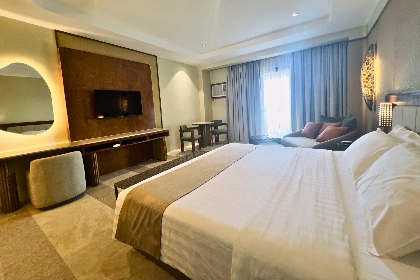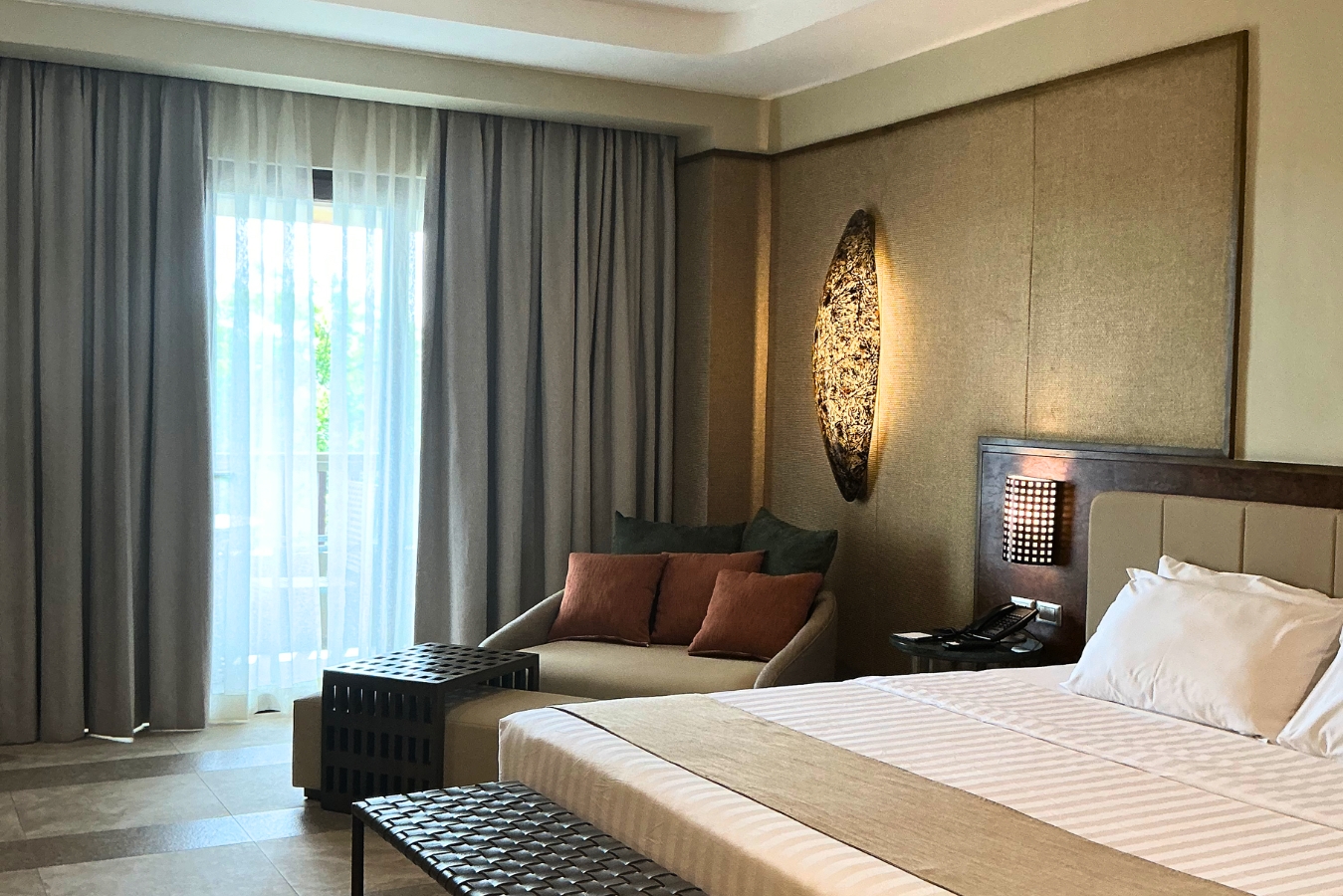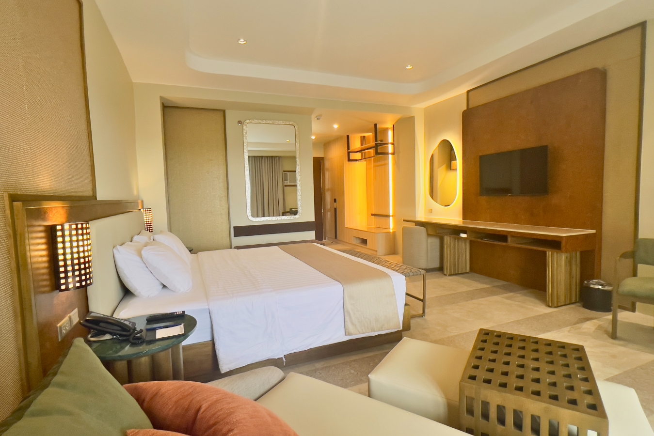 Experience elevated luxury in our Grand Premier King, perfect for two guests. Spanning 48 sqm, this elegant retreat features a super king-size bed and a private balcony offering a stunning pool view. The spacious layout and modern amenities provide the perfect blend of comfort and style. Whether you’re enjoying the serene view or unwinding in the refined interiors, this room offers a truly indulgent escape.